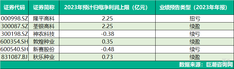 表1:6家上市種企2023年業(yè)績