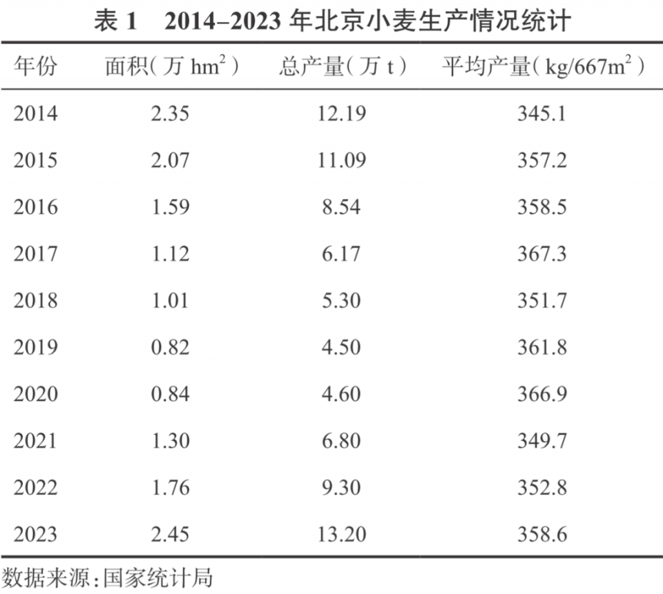 北京小麥生產(chǎn)現(xiàn)狀與變化