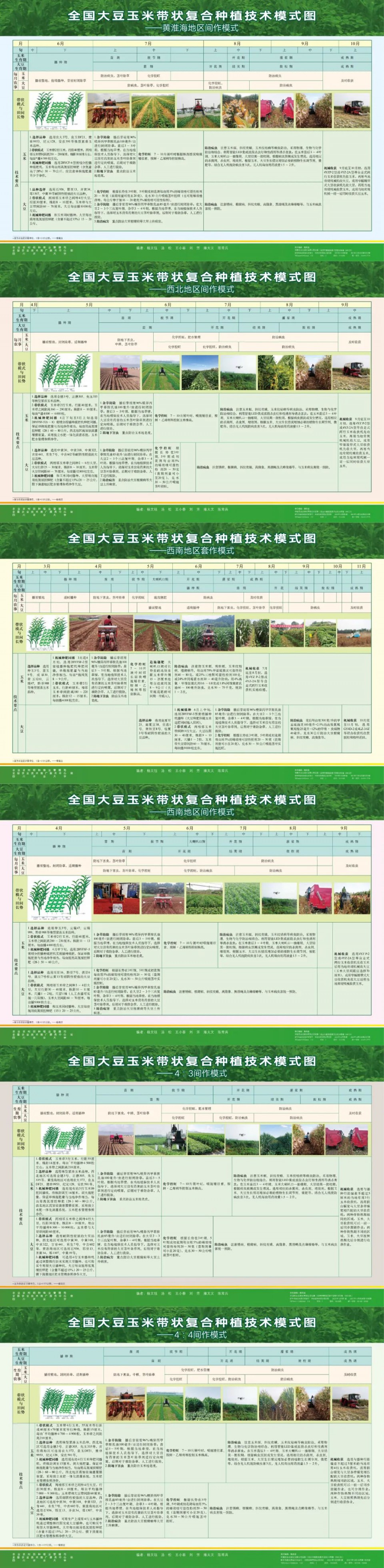 此次編印的《全國(guó)大豆玉米帶狀復(fù)合種植技術(shù)模式圖》共分7冊(cè),分為西南地區(qū)套作模式、西南地區(qū)間作模式、西北地區(qū)間作模式、黃淮海地區(qū)間作模式、4:3間作模式、4:4間作模式、6:4間作模式,針對(duì)2-6行大豆和2-4行玉米帶狀模式配比,介紹了品種搭配、播種施肥、病蟲草害防控、機(jī)械收獲等環(huán)節(jié)技術(shù)要點(diǎn),將為各大豆產(chǎn)區(qū)推廣應(yīng)用該項(xiàng)技術(shù)提供指引。