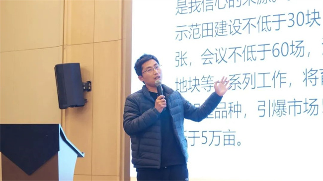 慶鴻事業(yè)部經理張長坤就育玉315的示范體系建設做了詳盡的講解,分析了一分地測產的實操方法,指出一分地測產可以讓農戶實實在在的看到育玉315的高產效果,也可以進一步提高市場占有率。