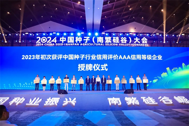 會(huì)上頒發(fā)“2023初次獲評(píng)中國(guó)種子行業(yè)信用評(píng)價(jià)AAA信用等級(jí)企業(yè)”牌匾