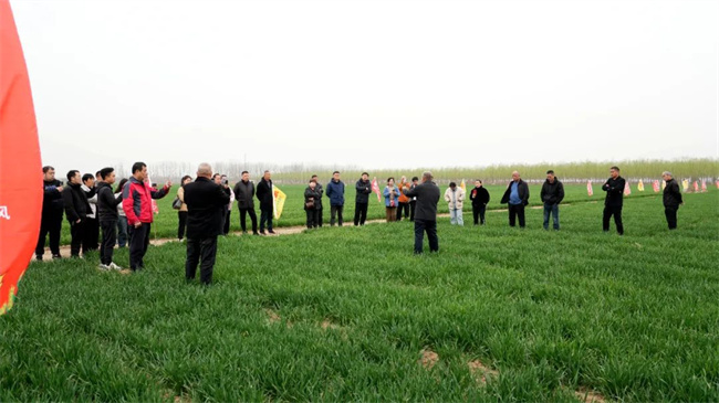 觀摩會上,與會嘉賓實(shí)地查看豐麥寶渦麥33小麥長勢及表現(xiàn),聽取了技術(shù)老師就如何通過栽培技術(shù),發(fā)揮渦麥33品種優(yōu)勢,挖掘品種高產(chǎn)潛力的介紹。