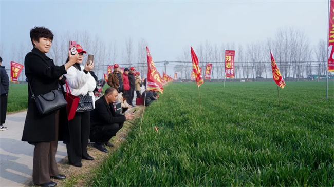 參會(huì)嘉賓對鄭麥186生產(chǎn)田進(jìn)行觀摩,查看了苗情長勢,聽取了河南省農(nóng)科院小麥所研究員吳政卿就鄭麥186的品種特性的詳細(xì)的介紹。據(jù)介紹,鄭麥186作為河南省農(nóng)科院最新選育的中強(qiáng)筋優(yōu)質(zhì)小麥品種,通過近兩年在河南各地的推廣種植,綜合性狀突出,抗病性強(qiáng)、分蘗多、成穗率高、高產(chǎn)、穩(wěn)產(chǎn)!