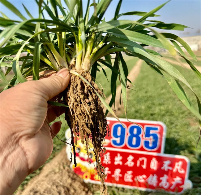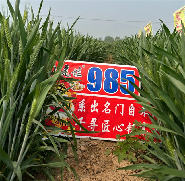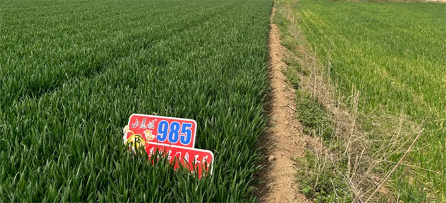 晨博985半冬性品種,審定編號:豫審麥20230124(國審試驗同步進行中),幼苗半匍匐,葉色深綠,苗齊苗壯分蘗能力強;春季起身早,兩極分化快,抽穗早;蠟質層厚,綜合抗性好;穗層整齊,熟相好;產(chǎn)量三要素協(xié)調,千粒重高,高產(chǎn)穩(wěn)產(chǎn),增產(chǎn)潛力大。