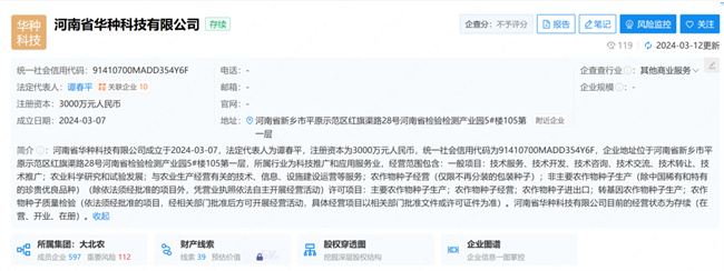 近日,河南省華種科技有限公司成立。公開信息顯示,河南省華種科技有限公司法定代表人為譚春平,注冊(cè)資本3000萬(wàn)元。經(jīng)營(yíng)范圍包含:主要農(nóng)作物種子生產(chǎn);農(nóng)作物種子經(jīng)營(yíng);農(nóng)作物種子進(jìn)出口;轉(zhuǎn)基因農(nóng)作物種子生產(chǎn)等。