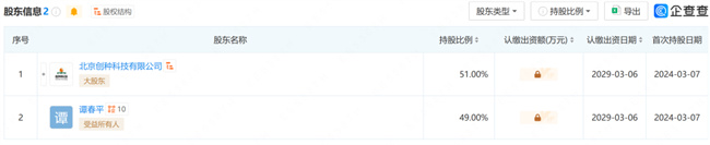 股權(quán)穿透顯示,該公司由大北農(nóng)全資子公司北京創(chuàng)種科技有限公司、譚春平共同持股。其中創(chuàng)種科技持股51%,譚春平持股49%。