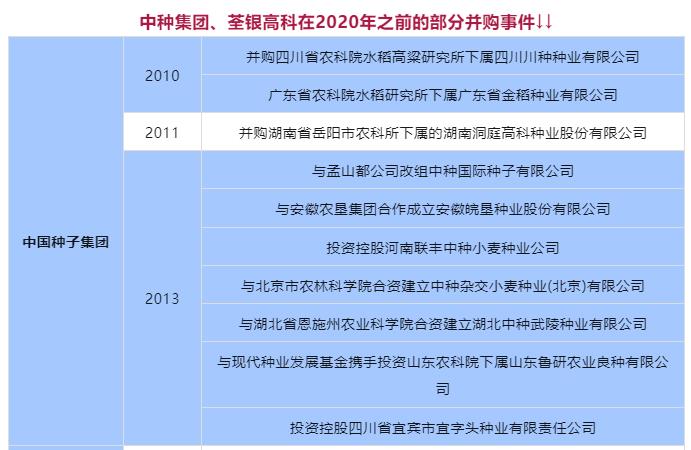 在全球第三次種業(yè)并購(gòu)潮中,中國(guó)化工在2017年斥資430億美元,成功收購(gòu)全球最大農(nóng)化公司、第三大種子公司——瑞士先正達(dá),成為中國(guó)迄今為止最大的海外收購(gòu)案。同年又從中糧集團(tuán)手中收購(gòu)荷蘭糧食與種子巨頭尼德拉種業(yè)。此后于2018年入股荃銀高科,2019年收購(gòu)三北種業(yè)有限責(zé)任公司。