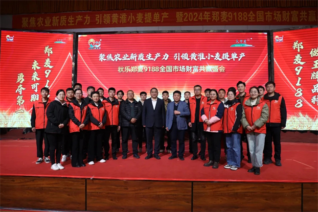 2024年3月25日,河南秋樂(lè)種業(yè)科技股份有限公司(下文簡(jiǎn)稱“秋樂(lè)種業(yè)”)鄭麥9188全國(guó)財(cái)富共贏盛會(huì)在許昌市鄢陵縣隆重召開(kāi)。全國(guó)人大常委、中國(guó)工程院院士許為鋼,河南省種業(yè)發(fā)展中心黨支部書(shū)記周繼澤,河南省種業(yè)集團(tuán)黨委書(shū)記、董事長(zhǎng),秋樂(lè)種業(yè)董事長(zhǎng)侯傳偉,許昌市國(guó)家農(nóng)業(yè)科技園副主任劉紅燁,許昌市種業(yè)發(fā)展中心主任申占寶,國(guó)家生物育種產(chǎn)業(yè)創(chuàng)新中心許為鋼院士團(tuán)隊(duì)專家胡琳,秋樂(lè)種業(yè)總經(jīng)理張雪君,秋樂(lè)種業(yè)副總經(jīng)理高偉等領(lǐng)導(dǎo)專家出席會(huì)議,來(lái)自全國(guó)經(jīng)銷商、零售商、種植大戶和新聞媒體朋友近千人參加會(huì)議。
