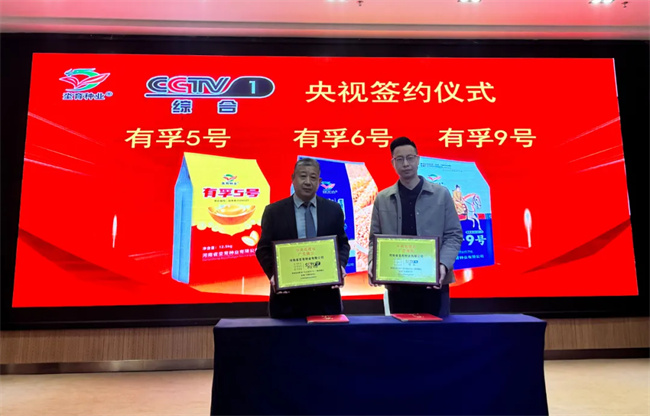 會(huì)上,坔育種業(yè)與央視廣告簽訂合作協(xié)議,賦能公司品種宣傳,提高品牌影響力,增強(qiáng)競(jìng)爭(zhēng)力。(左:坔育種業(yè)總經(jīng)理謝輝,右:發(fā)現(xiàn)品牌河南運(yùn)營(yíng)中心董主任)