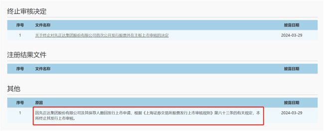 3月29日下午收盤后,上交所官網(wǎng)顯示,因先正達集團股份有限公司及其保薦人撤回發(fā)行上市申請,根據(jù)《上海證券交易所股票發(fā)行上市審核規(guī)則》第六十三條的有關規(guī)定,本所終止其發(fā)行上市審核。