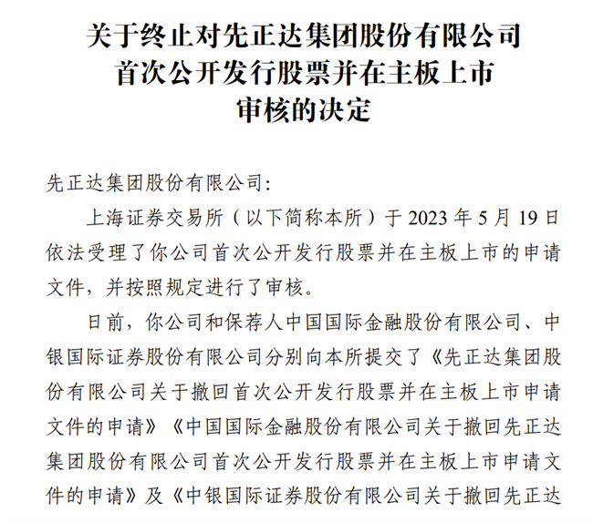 上交所稱,于2023年5月19日依法受理了先正達首次公開發(fā)行股票并在主板上市的申請文件,并按照規(guī)定進行了審核。日前,先正達和保薦人中金公司、中銀國際分別向本所提交了申請撤回申請文件。根據(jù)《上海證券交易所股票發(fā)行上市審核規(guī)則》第六十三條的有關規(guī)定,本所決定終止對你公司首次公開發(fā)行股票并在主板上市的審核。