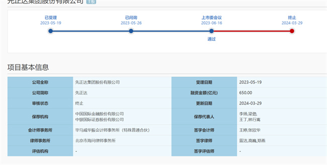 先正達終止IPO申請