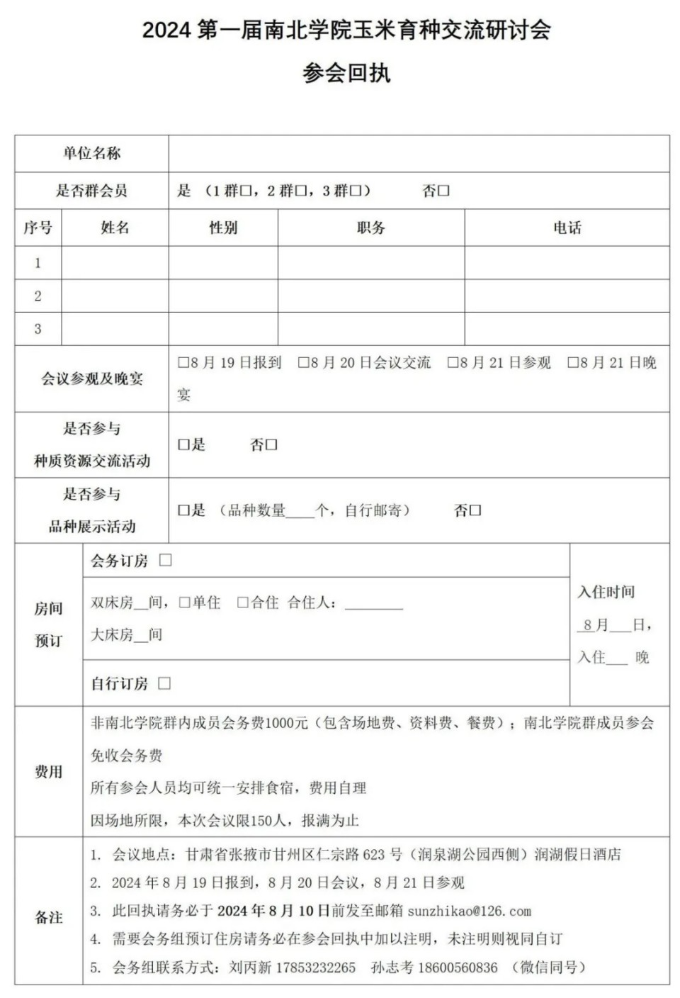 本次報名參會的育種家老師提供1-3份優(yōu)良自交系參與種質(zhì)資源交流活動,每個自交系分裝成160份,每份10粒種子并注明種質(zhì)來源及名稱,會議前郵寄到甘肅省農(nóng)科院統(tǒng)一分揀,隨簽到發(fā)放,不交流者也不獲得。