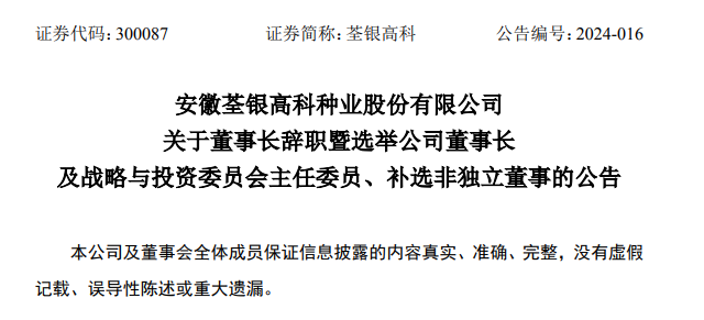 根據(jù)公告,荃銀高科董事會(huì)近日收到董事長覃衡德的辭職報(bào)告。覃衡德因工作安排原因申請辭去荃銀高科第五屆董事會(huì)董事、董事長以及戰(zhàn)略與投資委員會(huì)主任委員的任職,辭職后不再擔(dān)任公司其他任何職務(wù)。