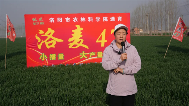 田間,焦作市種業(yè)發(fā)展中心焦竹青主任對焦作種業(yè)發(fā)展和品種應(yīng)用推廣情況作詳細介紹,給洛麥47予高度評價,對樂豐種業(yè)大力推廣洛麥47這一優(yōu)良品種表示贊賞。她表示,自己一直很關(guān)注洛麥47,在多年多點大田種植和示范推廣中,洛麥47抗倒性強、抗凍性好、豐產(chǎn)性好等優(yōu)良性狀充分展現(xiàn),是一個具有廣闊推廣應(yīng)用前景的好品種。希望各位經(jīng)銷商朋友和種植戶放心推廣、大膽種植,為農(nóng)民的增產(chǎn)增收做出積極貢獻!
