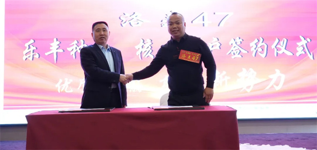 為進一步擴大洛麥47市場占有率與品牌影響力,延伸產(chǎn)業(yè)鏈,拓展產(chǎn)業(yè)鏈,會上,樂豐種業(yè)分別與魯花集團、種業(yè)商務(wù)網(wǎng)、核心經(jīng)銷商代表簽訂洛麥47深合作、強提升合作協(xié)議。