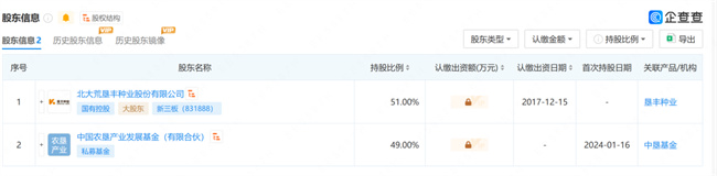 據(jù)最新公開信息,墾豐科沃施種有限公司的公司類型為“國(guó)有控股”,北大荒墾豐種業(yè)和中國(guó)農(nóng)墾產(chǎn)業(yè)發(fā)展基金分別持股51%、49%。