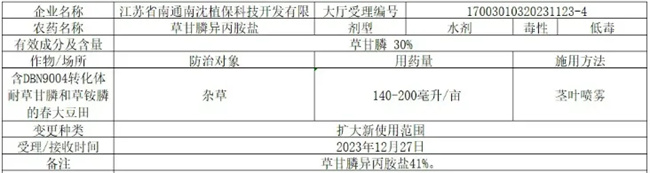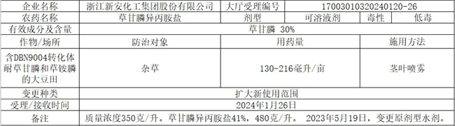 2024年3月--新安草甘膦轉基因作物除草劑,獲首批登記公示