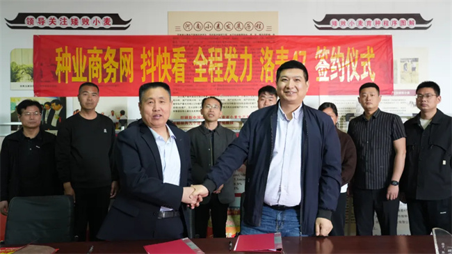 4月10日,種業(yè)商務(wù)網(wǎng)與河南省樂(lè)豐種業(yè)有限公司舉行了“抖快看”全程發(fā)力“洛麥47”大單品流量增長(zhǎng)簽約儀式。沁陽(yáng)市人大副主任衛(wèi)聚會(huì)、陳之州,種業(yè)商務(wù)網(wǎng)主任董偉,樂(lè)豐種業(yè)董事長(zhǎng)張立旗出席簽約儀式。
