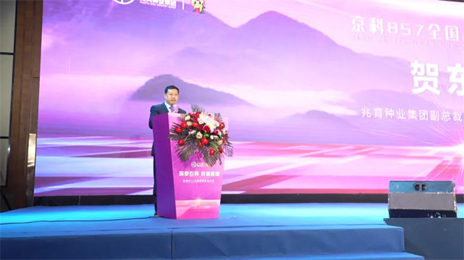 27載歲月崢嶸,27年砥礪奮進(jìn),三年華麗蛻變。一路走來,向新而行,兆育集團(tuán)深入貫徹創(chuàng)新發(fā)展理念,主動(dòng)融入種業(yè)新發(fā)展格局,從起步到領(lǐng)跑,從突破到跨越。正如兆育種業(yè)集團(tuán)副總裁、總農(nóng)藝師賀東剛研究員開幕式致辭所述:櫛風(fēng)沐雨27載,蠡玉人科研立企,默默耕耘,力行不怠。作為國(guó)家級(jí)育繁推一體化企業(yè),兆育種業(yè)集團(tuán)一直致力于品種培育與營(yíng)銷推廣,公司共選育審定玉米品種156個(gè),2個(gè)品種單年推廣面積超千萬畝,6個(gè)品種單年推廣面積超過500萬畝。獲得和申請(qǐng)植物新品種權(quán)近300個(gè)。2023年,兆育種業(yè)集團(tuán)不斷加強(qiáng)科企合作,與北京市農(nóng)林科學(xué)院種業(yè)大家趙久然老師簽訂戰(zhàn)略合作協(xié)議,引進(jìn)“京科”系玉米新品種。新時(shí)代征程中,蠡玉人勇于創(chuàng)新,敢于變革,2024年引入大北農(nóng)集團(tuán)創(chuàng)種科技戰(zhàn)略入股,并與大北農(nóng)生物科技建立全面轉(zhuǎn)基因合作,三年聚力,現(xiàn)已開啟全新發(fā)展篇章。同時(shí),希望各位經(jīng)銷商伙伴,以千萬畝潛力大單品“京科”系玉米品種發(fā)布會(huì)為契機(jī),通過思想的碰撞,智慧的交流,攜手同行,筑夢(mèng)農(nóng)科,共創(chuàng)輝煌!