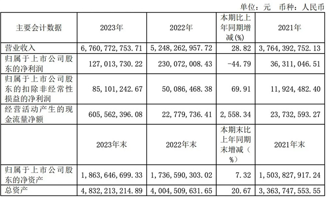 2023年,農(nóng)發(fā)種業(yè)實(shí)現(xiàn)營(yíng)業(yè)收入約67.61億元,同比增長(zhǎng)28.82%;歸屬于上市公司股東的凈利潤(rùn)約1.27億元,同比下滑44.79%。凈利潤(rùn)同比減少的主要原因是,2022年收回業(yè)績(jī)補(bǔ)償款增加利潤(rùn)1.59億元,2023年無(wú)此項(xiàng)收益。