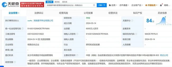 企查查APP顯示,近日,湖南隆平高科管理咨詢服務(wù)合伙企業(yè)(有限合伙)成立,執(zhí)行事務(wù)合伙人為湖南隆平種業(yè)有限公司,注冊(cè)資本6000萬(wàn)元。