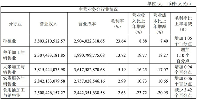 蘇墾農(nóng)發(fā)各板塊營(yíng)收