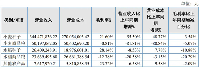 小麥種子營(yíng)業(yè)收入較上年同期增長(zhǎng)12,294.56萬(wàn)元,增長(zhǎng)55.50%,主要系公司強(qiáng)抓小麥種子市場(chǎng)機(jī)遇,創(chuàng)新銷售渠道,麥種銷售量增加所致。小麥種子營(yíng)業(yè)成本增長(zhǎng)系小麥種子銷售量增加所致。