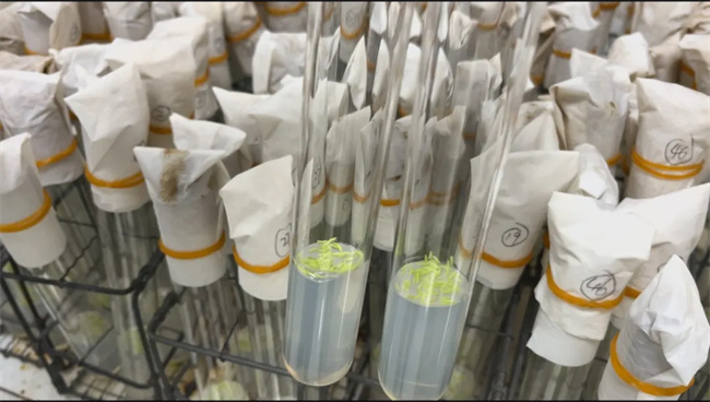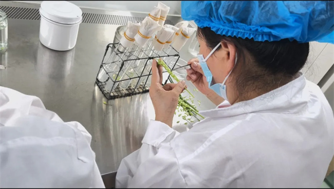 河南省農(nóng)科院小麥所細(xì)胞工程育種室主任趙永英博士介紹,基于國(guó)內(nèi)小麥育種發(fā)展的未來趨勢(shì)和產(chǎn)業(yè)發(fā)展需求的改變,她和她的團(tuán)隊(duì)及時(shí)調(diào)整育種方向,改變育種目標(biāo),并于2022年成功的選育了高產(chǎn)、穩(wěn)產(chǎn)、優(yōu)質(zhì)的饅頭小麥—鄭麥0926,與中種集團(tuán)的共同努力下,在生產(chǎn)上得到了很好的推廣應(yīng)用。隨后,趙博士帶領(lǐng)龔世海一行參觀了細(xì)胞工程育種實(shí)驗(yàn)室,并科普了鄭麥0926選育過程。