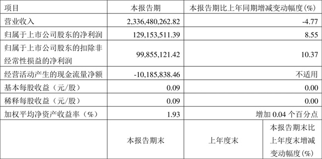 蘇墾農(nóng)發(fā)2024年一季度凈利潤1.29億元,同比增長8.55%;