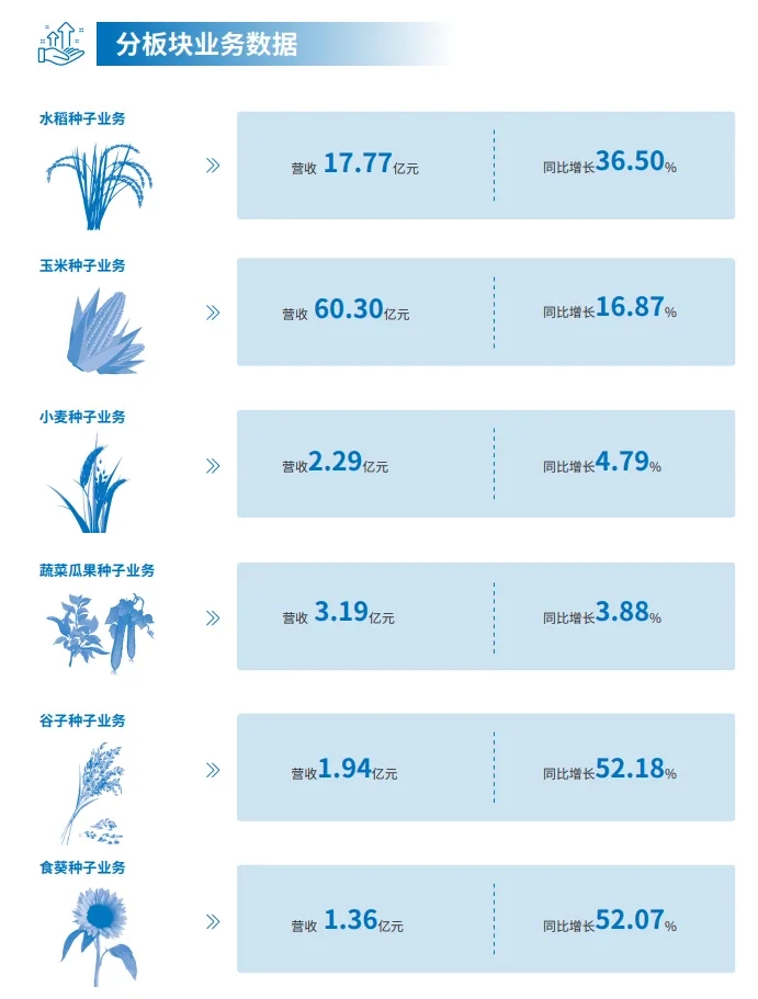 同期,公司水稻種子營收17.77億元,同比增長36.50%,市場占有率18%,位列國內(nèi)第一。