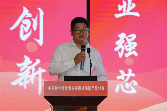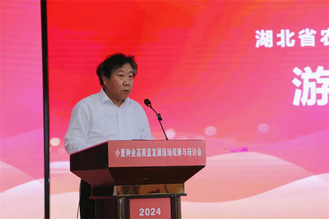 湖北省農(nóng)業(yè)農(nóng)村廳黨組成員、總農(nóng)藝師李宗友指出,省委省政府高度重視現(xiàn)代種業(yè)產(chǎn)業(yè)鏈建設(shè),省級財政每年安排5000萬元專項(xiàng)資金支持種業(yè)發(fā)展,希望各單位繼續(xù)在小麥品種育繁推、小麥產(chǎn)業(yè)發(fā)展、守住糧食安全底線等方面共同發(fā)力。他強(qiáng)調(diào),湖北農(nóng)發(fā)種業(yè)集團(tuán)作為湖北省屬的國有種業(yè)集團(tuán),要加大與省農(nóng)科院等科研院所的合作力度,選育小麥優(yōu)勢大品種,推出系列類似“墾麥58”的好品種;要發(fā)揮國企擔(dān)當(dāng),不斷推動小麥種業(yè)邁上新臺階;要建設(shè)大基地,打造國家級小麥良種繁育基地;要堅(jiān)持大推廣,助力培育出的大品種產(chǎn)生大效益;要開展大聯(lián)合,共同做大做強(qiáng)小麥產(chǎn)業(yè)。