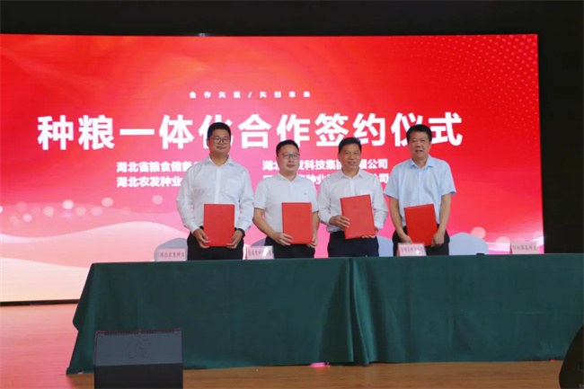 會上,湖北省糧食儲備有限公司、湖北農(nóng)發(fā)科技集團(tuán)有限公司、湖北農(nóng)發(fā)種業(yè)集團(tuán)有限公司、鄂科華泰種業(yè)股份有限公司共同簽訂種糧一體化合作協(xié)議,協(xié)同推動優(yōu)質(zhì)抗病小麥新品種轉(zhuǎn)化落地和大面積推廣應(yīng)用,助力全省小麥種業(yè)高質(zhì)量發(fā)展。