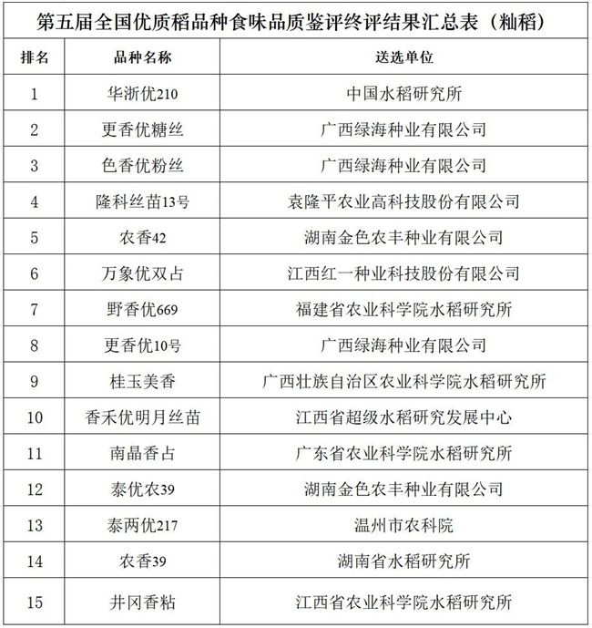 獲第五屆全國優(yōu)質(zhì)稻品種食味品質(zhì)鑒評金獎!
