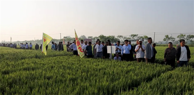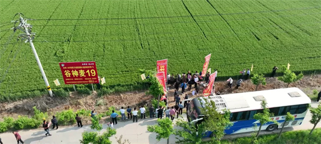 會前,與會代表觀摩了谷神麥19、新麥45及新品種的展示示范田,聽取了技術人員品種特征特性及高產(chǎn)栽培技術介紹,更進一步加深了對谷神麥19、新麥45的認識和了解,以及對公司推出的高產(chǎn)多抗廣適的小麥新品種國禾麥2號、國禾麥3號廣闊市場應用前景的美好憧憬。