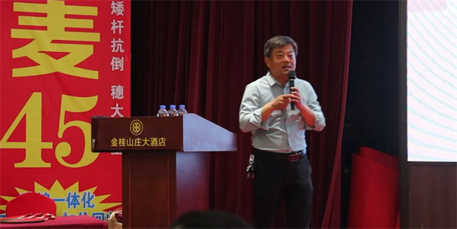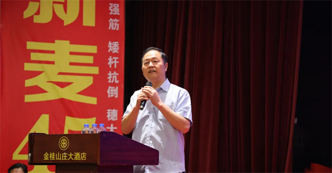 依托優(yōu)良品種和公司技術優(yōu)勢,促進種業(yè)高質(zhì)量發(fā)展。會上,谷神種業(yè)董事長王軍就如何充分發(fā)揮高產(chǎn)強筋小麥谷神麥19和新麥45品種優(yōu)勢,因地制宜,配套相應的高產(chǎn)栽培技術,以期實現(xiàn)綠色、高質(zhì)、高效,促進產(chǎn)業(yè)高質(zhì)量發(fā)展做賦能分享。
