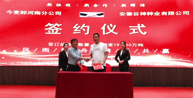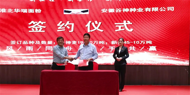會上,谷神種業(yè)分別與今麥郎河南分公司和淮北華瑞面粉有限公司簽訂了戰(zhàn)略合作協(xié)議,合力助推優(yōu)質(zhì)小麥產(chǎn)業(yè)高質(zhì)量發(fā)展。
