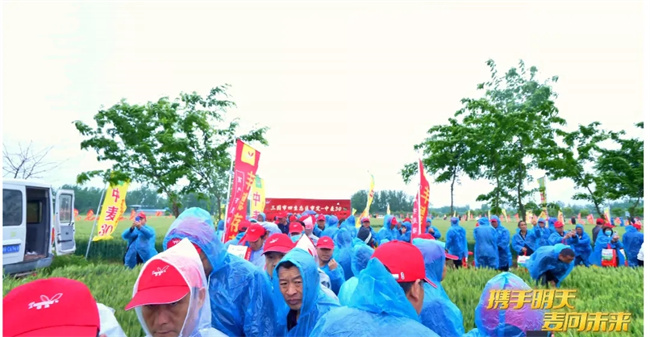 會議當(dāng)天,雖然刮著大風(fēng),下著大雨,也未阻擋住與會嘉賓冒雨觀摩“中麥30”和“豐德存麥23”的熱情。觀摩現(xiàn)場,我國著名的小麥育種家鄭天存研究員和中國農(nóng)科院作物研究所郝元峰博士分別從小麥優(yōu)異的農(nóng)藝性狀重要作用、黃淮小麥品種需要具備的哪些抗逆優(yōu)勢滿足當(dāng)前農(nóng)業(yè)生產(chǎn)需要做分享,也為經(jīng)銷商在選擇要推廣的品種提供很好參考和借鑒。同時(shí),現(xiàn)場的經(jīng)銷商代表、種地大戶還分享了近幾年推廣和種植“豐德存麥23”、“中麥30”的心得體會,表達(dá)了對品種優(yōu)秀表現(xiàn)的認(rèn)可和持續(xù)做好市場的信心。