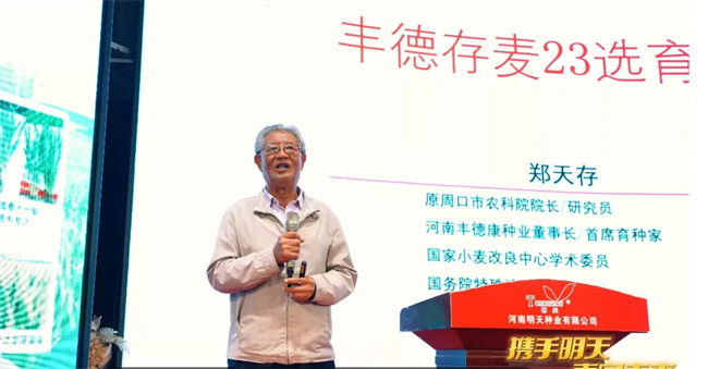 選用高產(chǎn)優(yōu)質(zhì)的小麥品種是實(shí)現(xiàn)高產(chǎn)的基礎(chǔ)。優(yōu)良品種具有更好的抗病性、抗逆性和產(chǎn)量潛力。當(dāng)前,小麥品種特別多,不同的地區(qū)有不同的當(dāng)家品種,因此,在選擇小麥品種時(shí)要選擇適應(yīng)性強(qiáng),抗凍、抗旱、抗倒伏、抗病蟲害綜合性狀好的小麥品種,選擇這樣的品種是提高小麥產(chǎn)量的前提。會上,鄭天存研究員介紹:豐德存麥23高度聚合周麥27/周麥22雙親綜合優(yōu)勢,大穗、大粒、群體大,具備產(chǎn)量高、抗倒好、綜合抗病性強(qiáng)、增產(chǎn)潛力大和廣適性強(qiáng)等突出優(yōu)點(diǎn),符合當(dāng)前市場急需,農(nóng)業(yè)生產(chǎn)需要,自推廣應(yīng)用以來,在各地突出的優(yōu)秀表現(xiàn),越來越受到市場歡迎和種植戶喜歡。他說:相信在明天種業(yè)的先進(jìn)的經(jīng)營理念和創(chuàng)新營銷模式下,“豐德存麥23”市場占有率會逐年提升,競爭力會持續(xù)增強(qiáng),也將為更多的種植戶帶來更大的收益,為農(nóng)業(yè)增產(chǎn)增效做出更大貢獻(xiàn)!