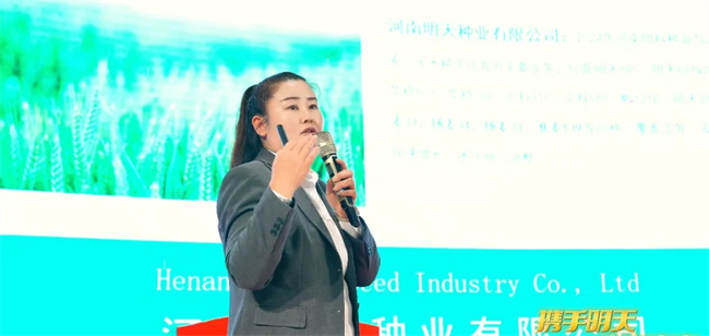 會上,河南明天種業(yè)有限公司總經(jīng)理邱敏分享了“中麥30”和“豐德存麥23”等品種賣點(diǎn)和亮點(diǎn),介紹了2024年?duì)I銷規(guī)劃,宣讀了有關(guān)銷售賦能政策。