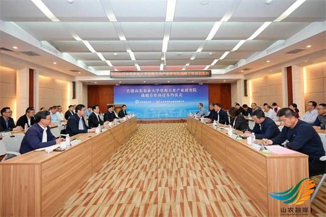 冷暢儉、唐世偉分別代表雙方簽署共建玉米產業(yè)研究院合作協(xié)議。根據協(xié)議,雙方將本著“合作共享,互利共贏”的原則,聚焦服務種業(yè)強國、鄉(xiāng)村振興、糧食安全等國家重大戰(zhàn)略,充分發(fā)揮山東農業(yè)大學人才、科技優(yōu)勢和山東登海種業(yè)股份有限公司產業(yè)優(yōu)勢,建立“登海種業(yè)-山東農大青島創(chuàng)新中心”和“登海種業(yè)-山東農大海南實驗室”,圍繞玉米基因編輯、分子設計育種、生物育種、種子科學與技術、栽培生理等方向,加強核心技術攻關,提高育種效率和品種選育質量,為實現種業(yè)科技自立自強、種源自主可控,推動民族種業(yè)振興貢獻山東力量。