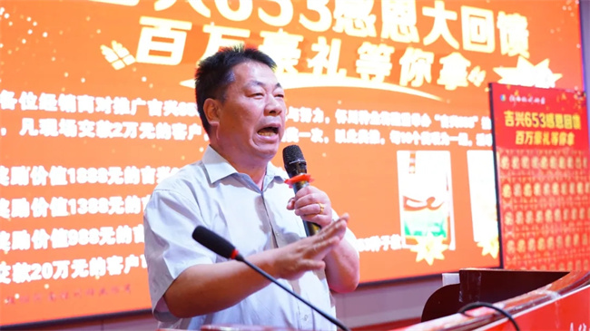 懷川種業(yè)營(yíng)銷總經(jīng)理管慶飛介紹了吉興653連續(xù)多年多地以及今年在各地大田良好表現(xiàn),分享了終端商對(duì)吉興653的高度認(rèn)可和農(nóng)民豐收的喜悅和盛贊,著重介紹了2024年打造吉興653大品種營(yíng)銷規(guī)劃,并就下一步營(yíng)銷工作具體事宜做出周密安排布署。
