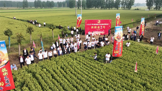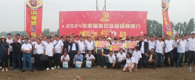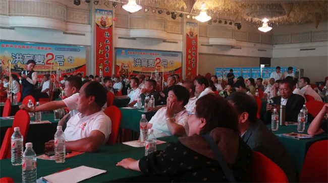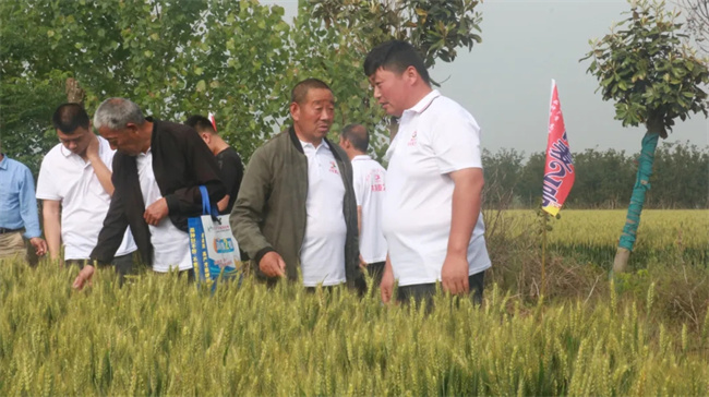 會前,參會嘉賓觀摩了“洪育麥2號”生產大田,察看了當前處于灌漿期“洪育麥2號”整體長勢情況,分享了推廣“洪育麥2號”兩年來的體會心得,對“洪育麥2號”高產穩(wěn)產和綜合抗性強等優(yōu)勢表示高度認可,并就如何“上量擴面”的營銷策略和技巧進行交流。