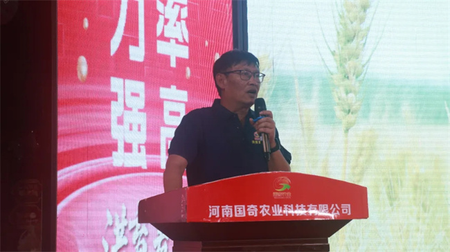 室內會上,國奇農業(yè)董事長曹新元致歡迎詞。曹總對多年來關心和支持國奇農業(yè)高質量發(fā)展的各位合作伙伴表示衷心的感謝。他說:希望能夠借此機會,與各位合作伙伴建立更加緊密的關系,通過深入交流和討論,能夠產生更多的創(chuàng)新思路和觀點,共同推動種業(yè)事業(yè)進步和市場拓展,創(chuàng)造“洪育麥2號”更加美好未來!