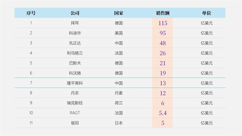 本排名僅包括正式公布賬目的公司。由于缺乏公開的財務(wù)信息,一些頂級種子公司未被納入排名,但應(yīng)被視為前 20 強種子公司: