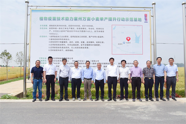 5月9日,湖北省襄陽市襄州區(qū)黃集鎮(zhèn)毛崗村萬畝連片小麥示范基地風(fēng)吹麥浪,華中農(nóng)業(yè)大學(xué)、湖北洪山實驗室等單位在襄州區(qū)舉行“植物疫苗促進(jìn)小麥抗病增產(chǎn)、提質(zhì)增效綠色技術(shù)”田間示范觀摩會,中國工程院院士康振生、柏連陽、張獻(xiàn)龍等相關(guān)專家組成專家組,進(jìn)行了田間應(yīng)用效果評價。