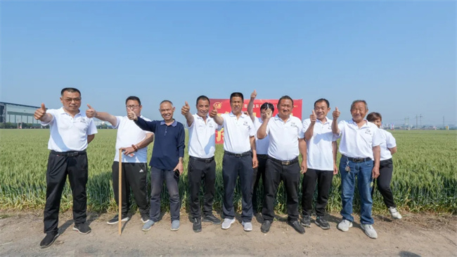 會前,參會嘉賓觀摩了豫園8號等小麥新品種示范田。觀摩現(xiàn)場,各參會嘉賓從品種的高產(chǎn)、抗倒和穗層整齊度等方面給予高度評價和認(rèn)可,并紛紛表示,下一步,將積極落實(shí)各項(xiàng)推廣措施,上量增面積,擴(kuò)大品種在當(dāng)?shù)厥袌鲇绊懥Γ瑸樽约?、為公司?chuàng)造更多價值。