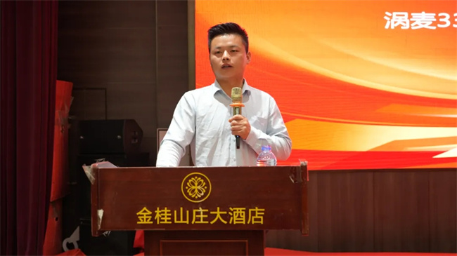 豐度高科谷物協(xié)創(chuàng)中心負(fù)責(zé)人劉鵬飛對(duì)“渦麥33”2024年營(yíng)銷(xiāo)戰(zhàn)略進(jìn)行分享,解讀了賦能支持政策。他表示,公司將在政策、資金、宣傳、技術(shù)等方面提供全方位服務(wù),全力支持各位合作伙伴做大做強(qiáng)“渦麥33”市場(chǎng),共創(chuàng)共贏!