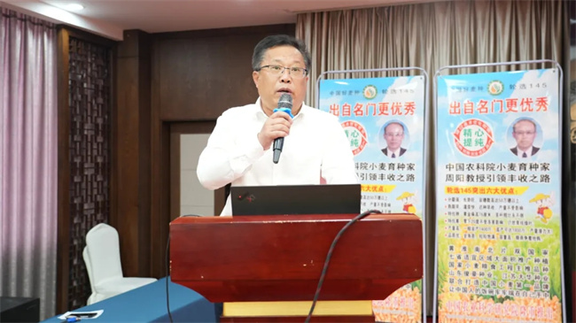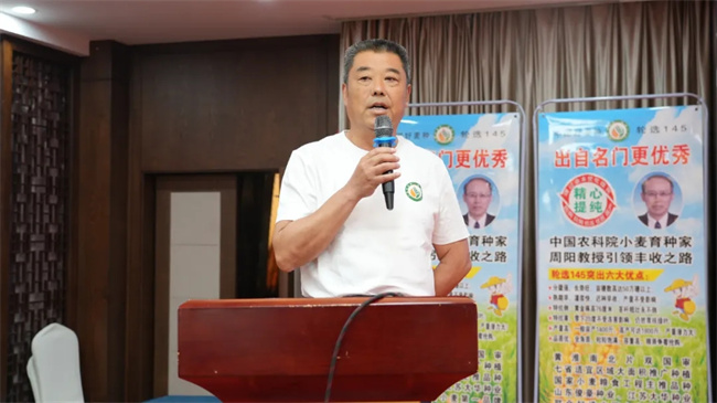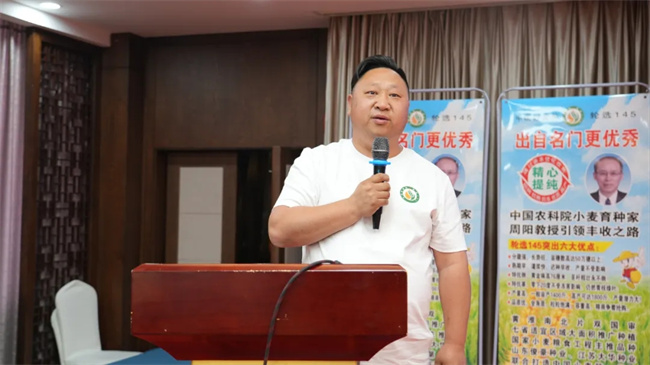 宿遷大華種業(yè)總經(jīng)理趙永錦致歡迎詞。趙總在致詞中首先對(duì)多年來(lái)關(guān)心和支持公司發(fā)展的各級(jí)領(lǐng)導(dǎo)、專(zhuān)家、合作伙伴表示衷心的感謝。他說(shuō):公司將繼續(xù)依托集團(tuán)公司雄厚的資金、科研、技術(shù)服務(wù)和健全的網(wǎng)絡(luò)渠道支持,攜手合作伙伴,聚力將輪選145打造成黃海麥區(qū)大單品!