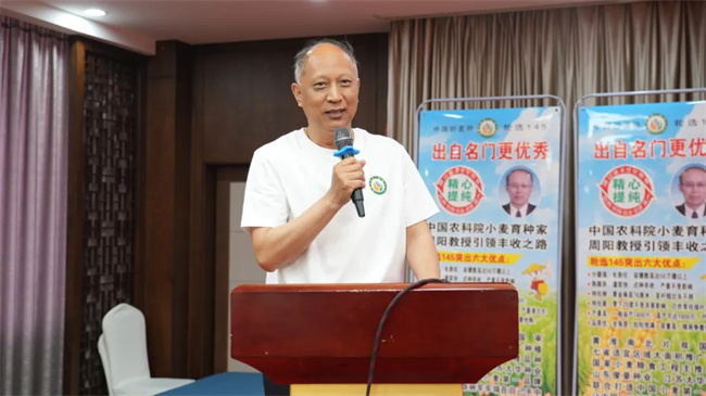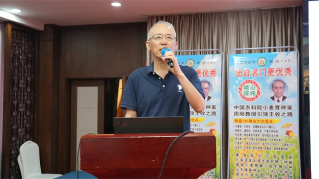 中國(guó)農(nóng)科院作科所輪選145品種育成專(zhuān)家周陽(yáng)研究員詳細(xì)介紹了小麥新品種選育背景、選育歷程、品種特性及生產(chǎn)應(yīng)用表現(xiàn)情況。據(jù)介紹,輪選145高度聚合了濟(jì)麥22和169綜合優(yōu)勢(shì),尤其在抗寒性、抗倒性和廣適性超過(guò)雙親,實(shí)現(xiàn)高產(chǎn)、廣適新突破。